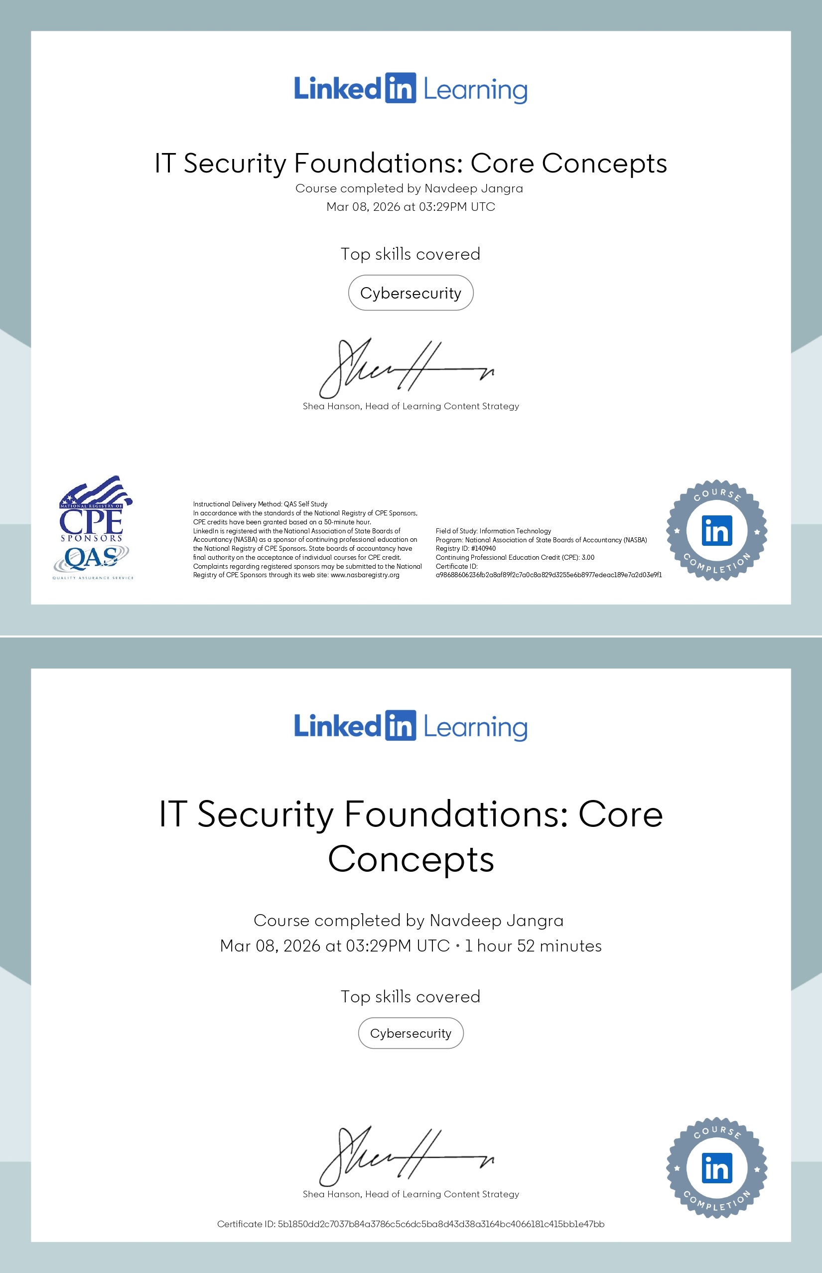 Covered core cybersecurity principles, threat models, and essential security practices.